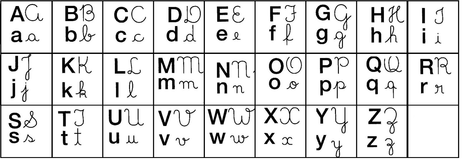 Ficha do Alfabeto Maiúsculo e Minúsculo com letras cursivas .