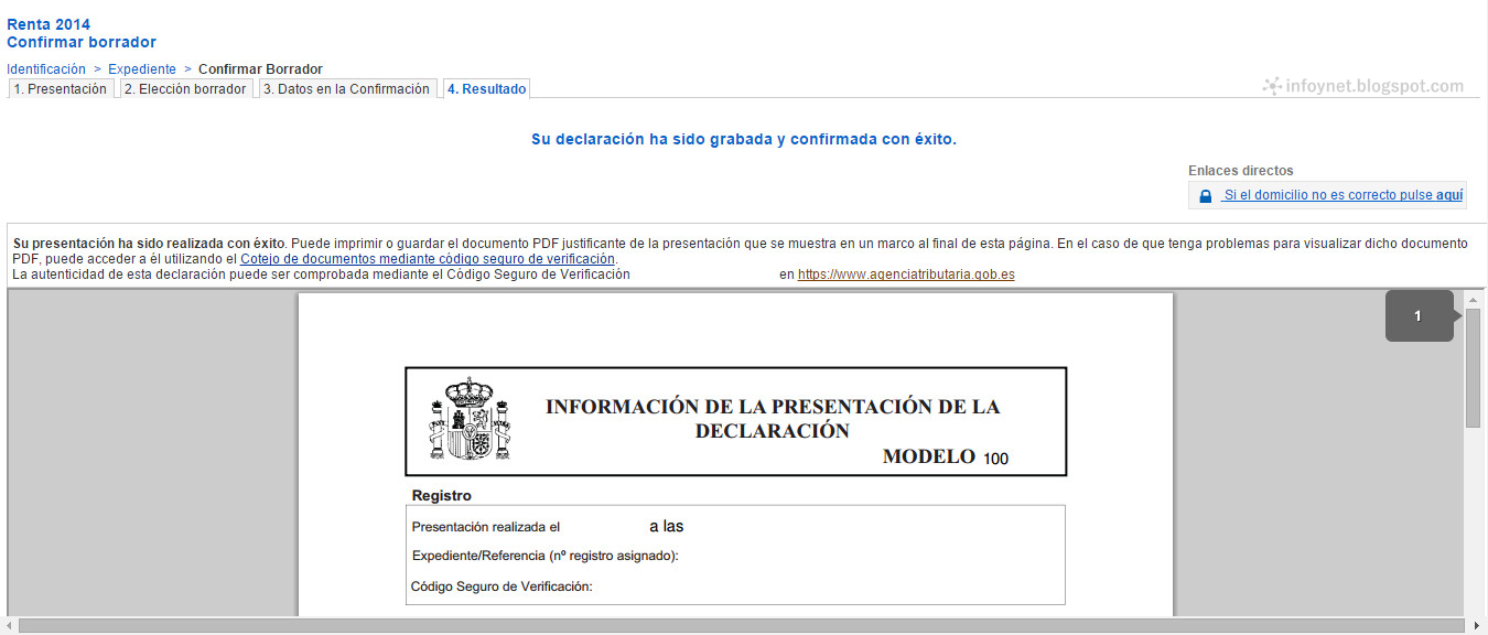 InfoNet: Confirmar el borrador de la Renta por Internet .