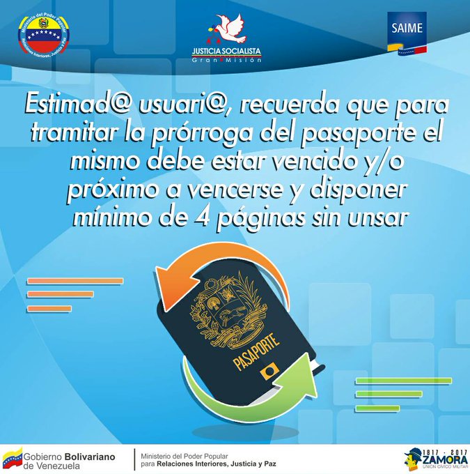 Saime publica pasos para solicitar prórroga del pasaporte .