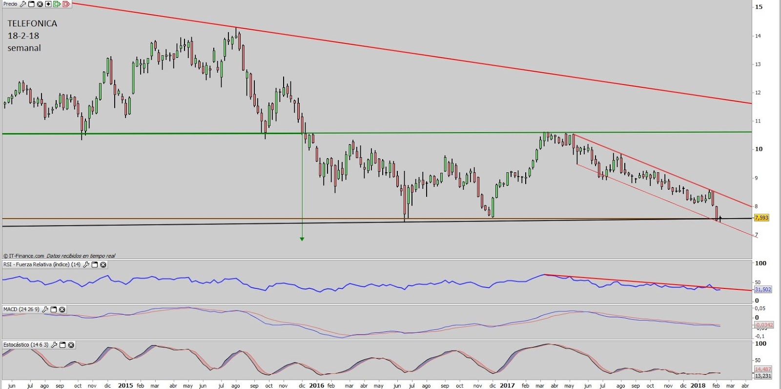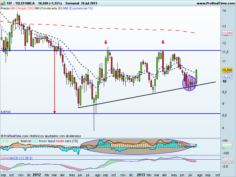 Gráficos de Txarly: TELEFONICA A VER SI LIBRA EN SEMANAL .