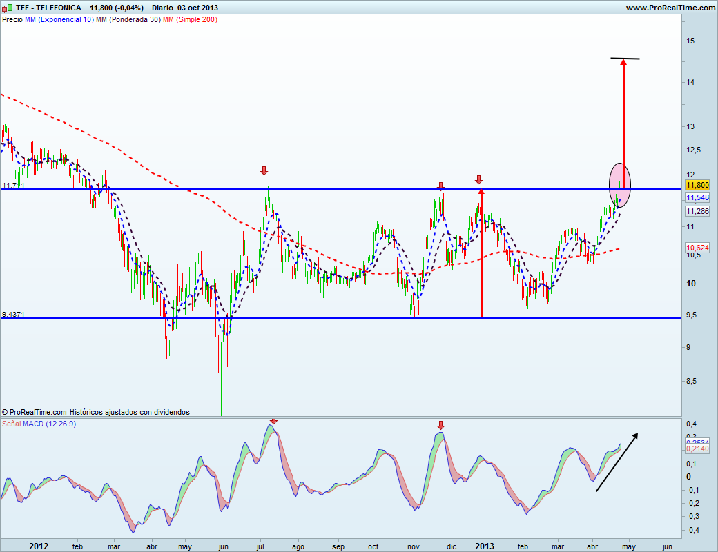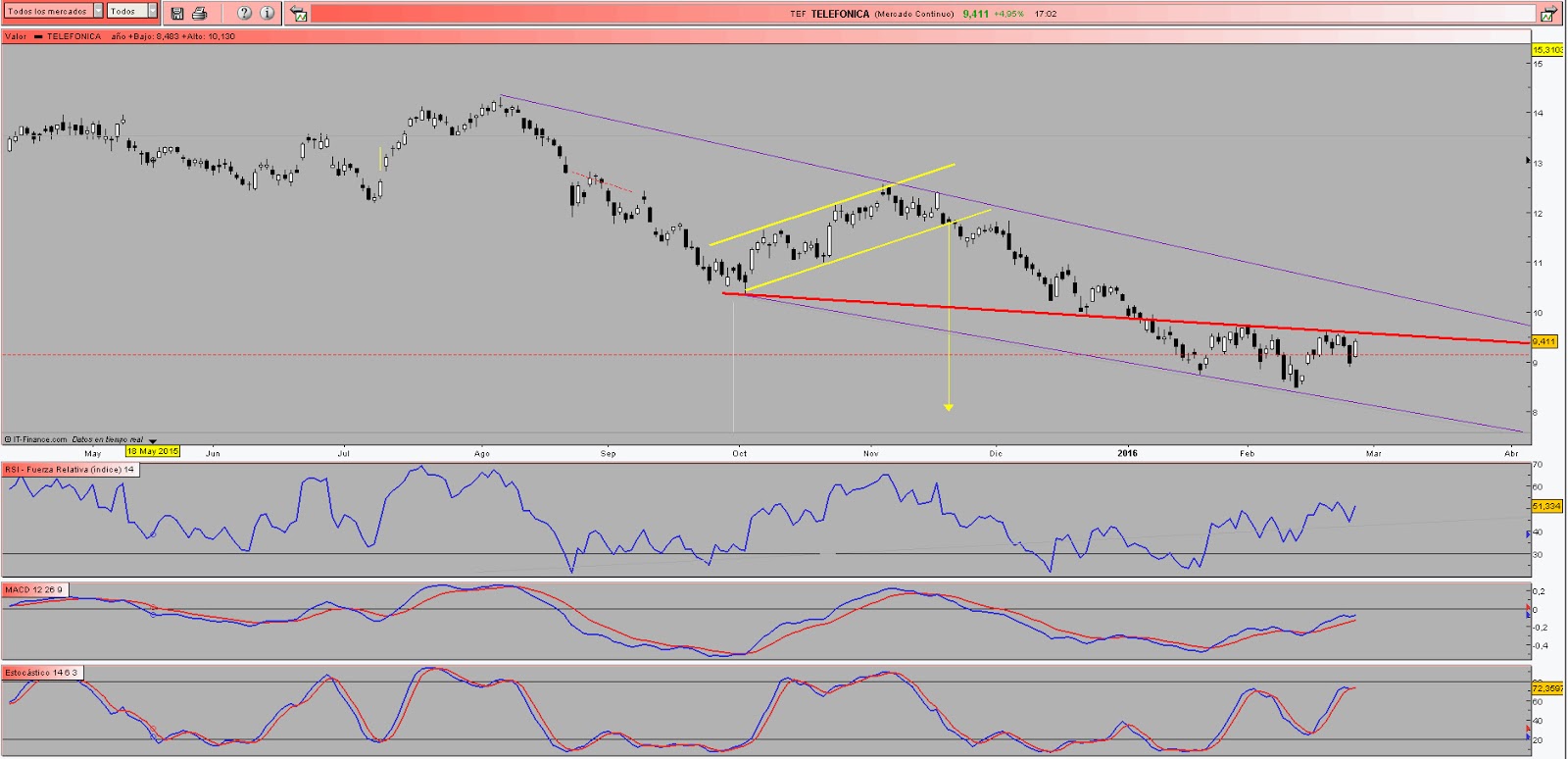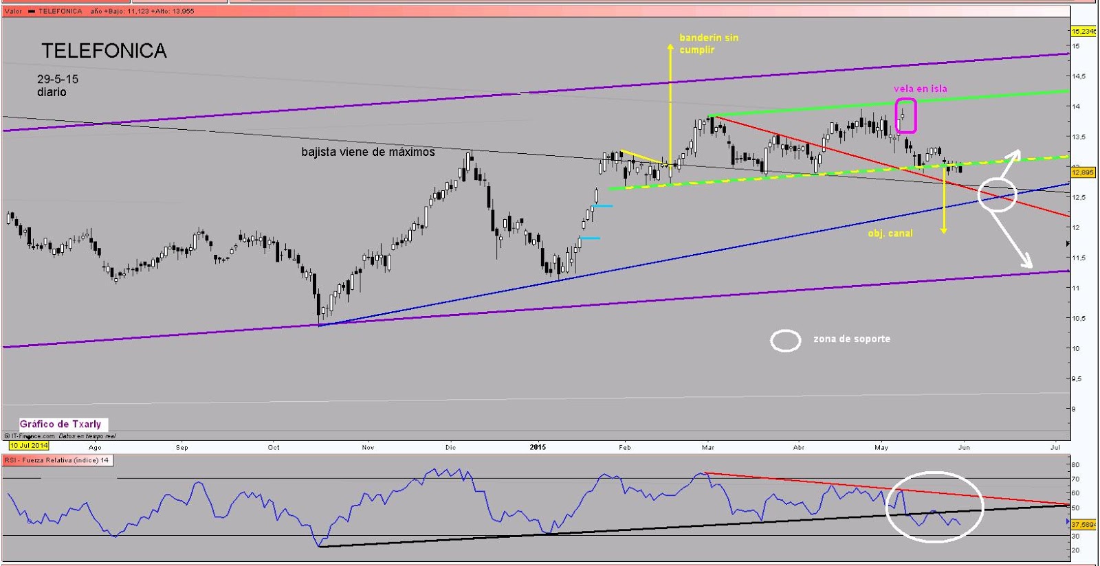Gráficos de Txarly: TELEFONICA,ESPERAR A VER DONDE PARA LA ... .
