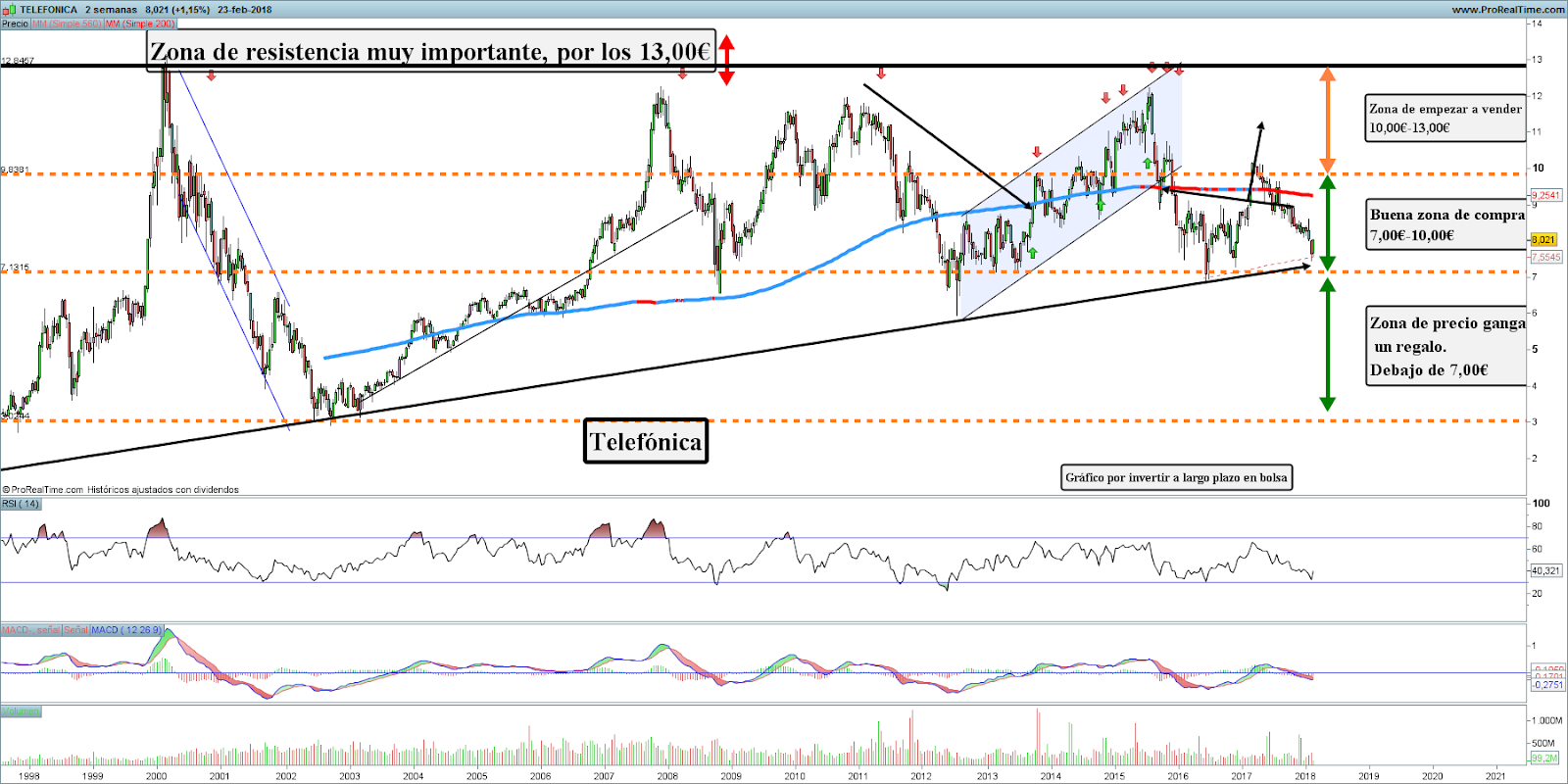 Invertir a largo plazo en bolsa: Telefónica Gráfico largo ... .