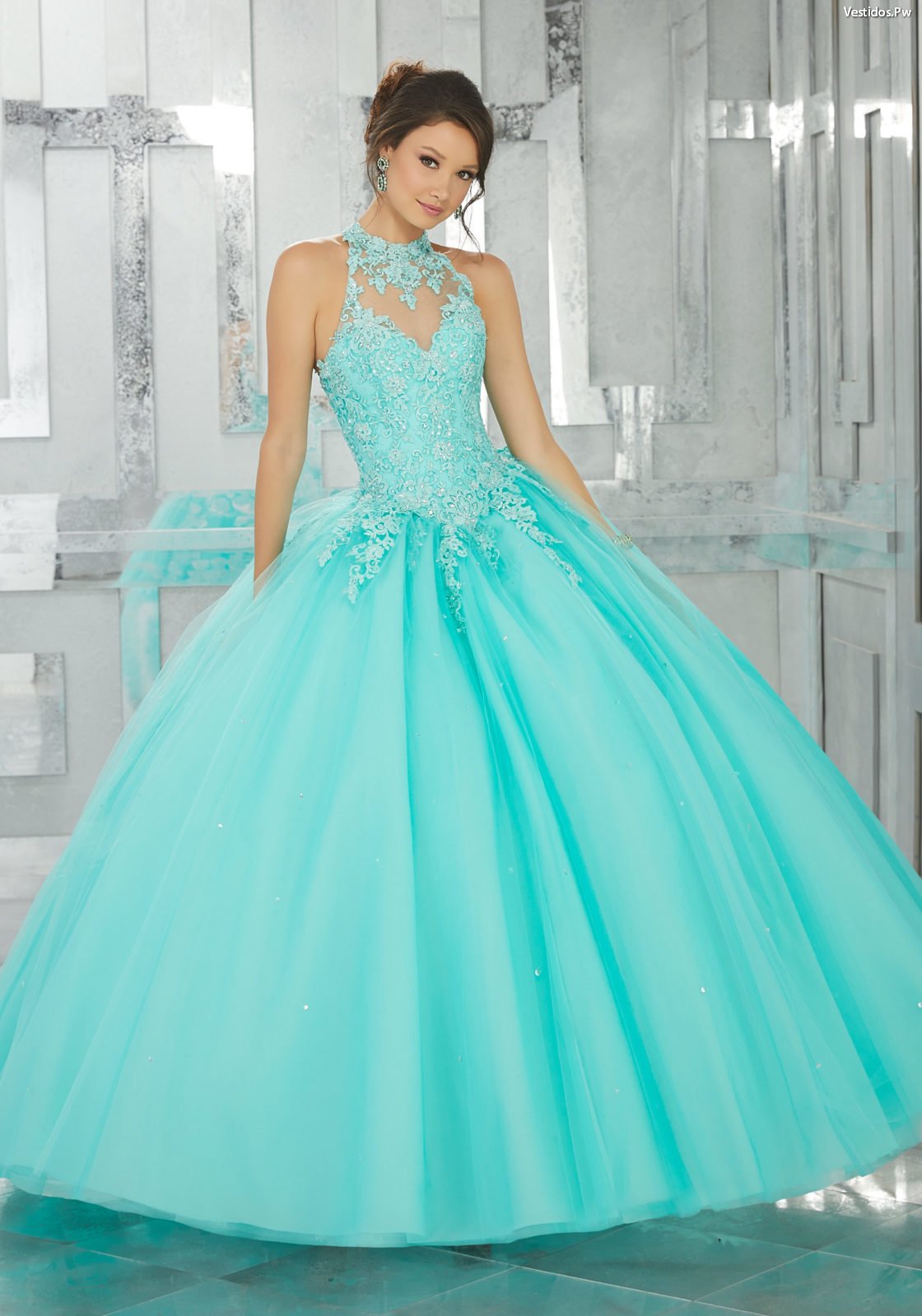 Vestidos para XV color menta con corte princesa | Vestidos ... .