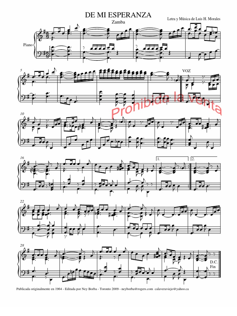 De mi esperanza - Partitura y Letra .